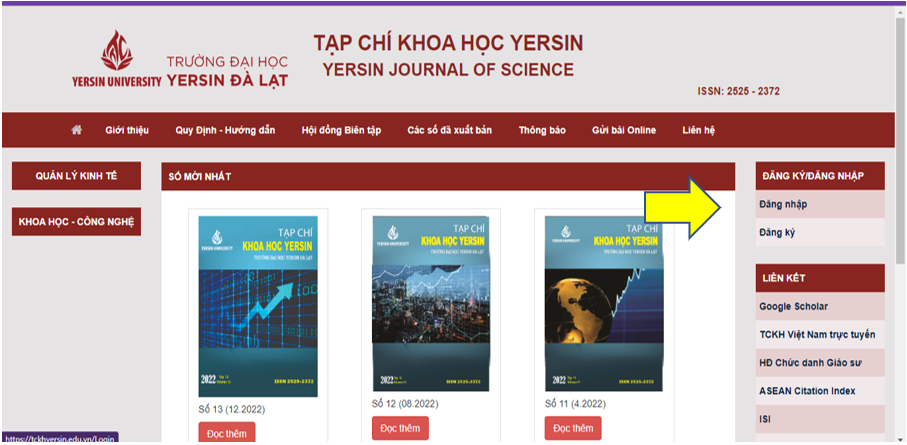 - Tên người dùng và mật khẩu đã được đăng ký sẽ được sử dụng trong suốt quá trình nộp bài trực tuyến cho Tạp chí. Tác giả hoàn toàn chịu trách nhiệm về tính bảo mật của tài khoản. Sau đó, bạn sẽ được dẫn trực tiếp đến trang chủ của người dùng.