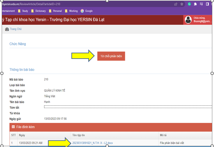 - Click file “Phản biện bài viết” để nhận bài viết phản biện