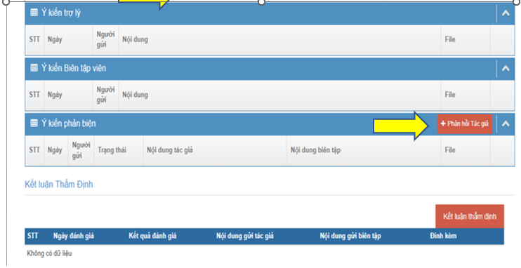 - Click “Phản hồi tác giả” nếu đồng ý phản biện